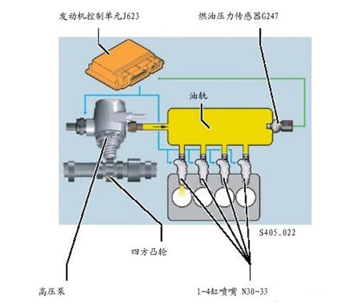 1.4TSI的高压供油编制可能分为动员机驾驭模块(ECM)、高压油轨、高压油泵和喷油嘴四个人。缸内直喷起初必要处理的是怎么将燃油直接喷入压力很高的气缸内,而且喷油编制还必要对喷射的燃油举办正确的驾驭,云云才智确保缸内直喷的燃烧效用。